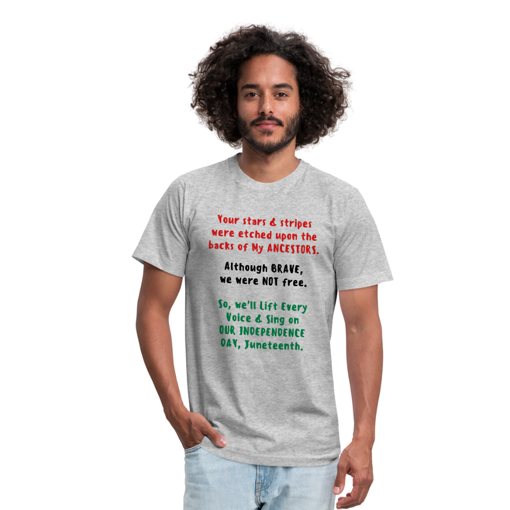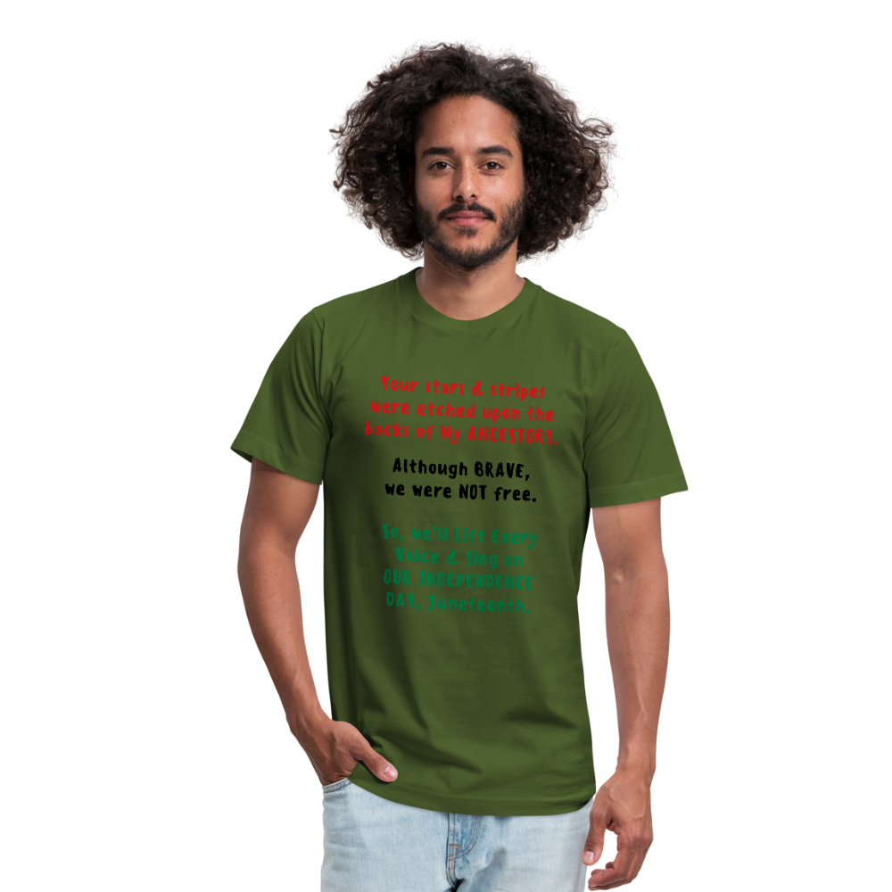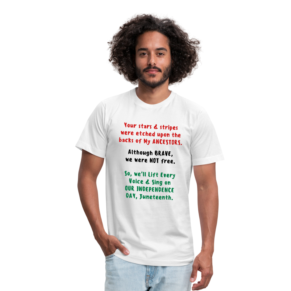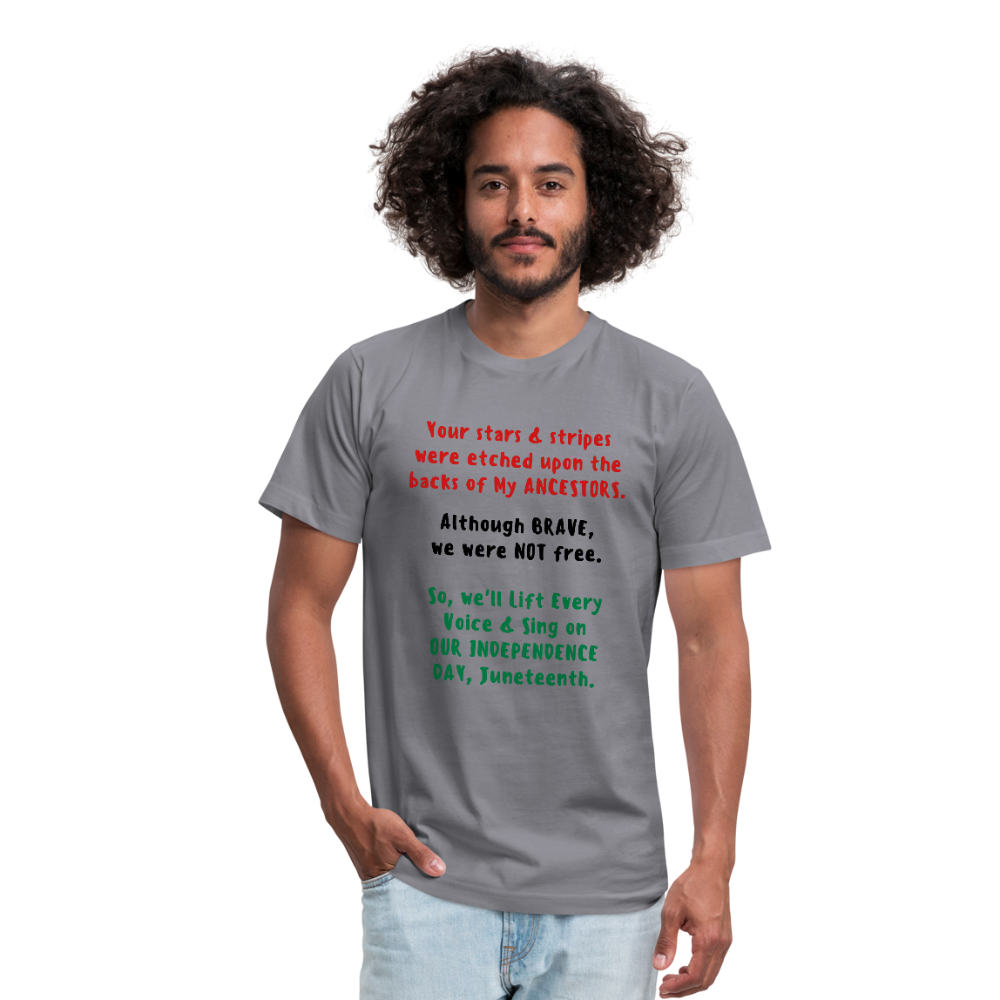The 4th of July celebrates the independence of the United States. However, everyone wasn't free in 1776. This shirt boldly acknowledges that truth. 1865 was when slaves were emancipated, and the beginning of a different journey. Chains are still being broken. #Juneteenth